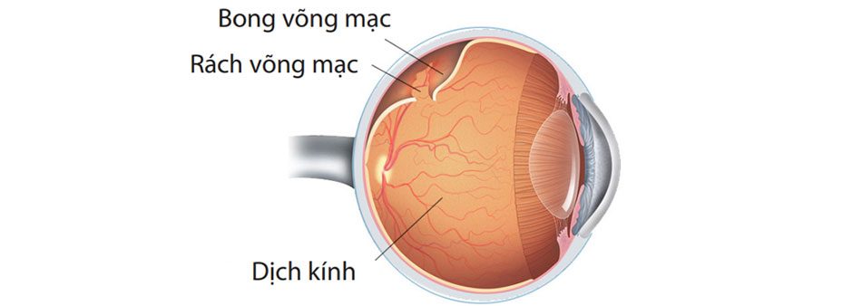 - Bong võng mạc xảy ra khi trên võng mạc xuất hiện một hay nhiều vết rách. Khi đó, phần dịch kính bên trong mắt sẽ chảy qua vào lỗ rách và tràn xuống phía dưới võng mạc, tách dần võng mạc ra khỏi lớp mô nuôi dưỡng phía bên dưới.