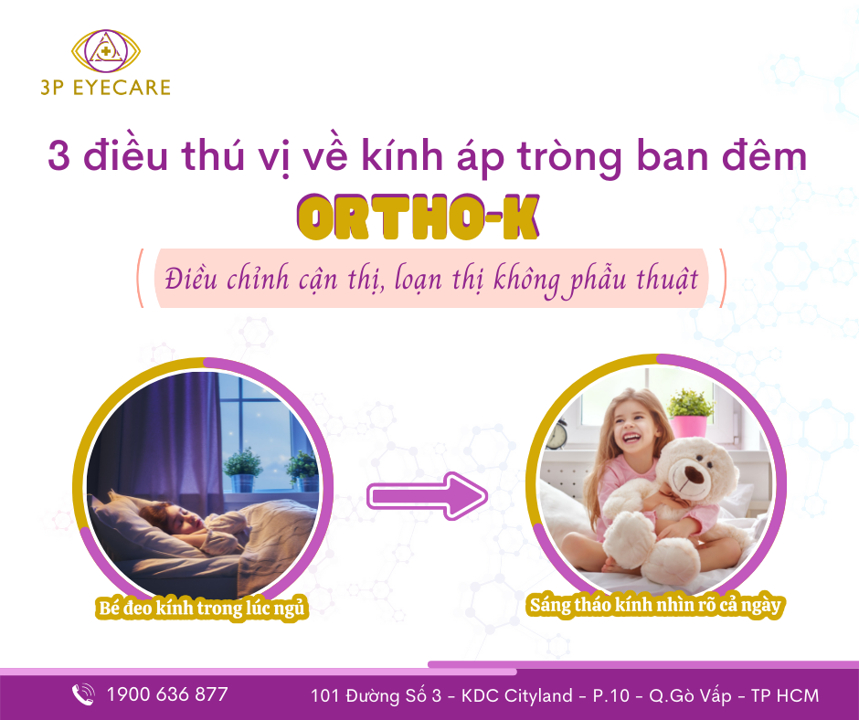 Ortho – K là việc sử dụng kính áp tròng thấm khí được thiết kế đặc biệt đeo vào ban đêm để khắc phục tạm thời cận thị và các vấn đề về thị lực khác. Vì vậy kính gọng và kính áp tròng không cần thiết khi thức dậy.