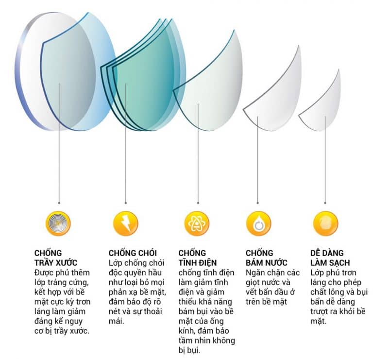 Là các lớp váng khác nhau dược nhà sản xuất (NSX) phủ lên bề mặt tròng nhằm bảo vệ và giúp cho chất lượng hình ảnh hay truyền quang được tối ưu nhất.
